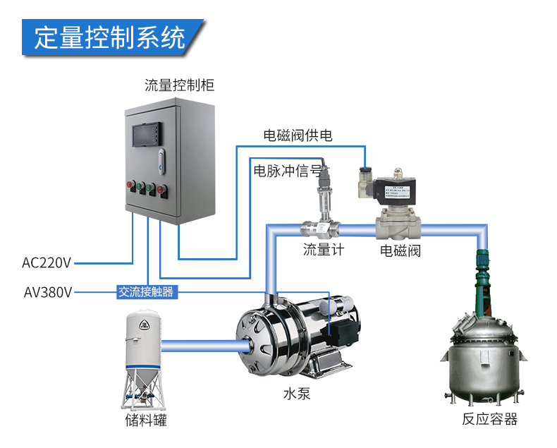 应用:食品加水系统,化妆品加水系统,定量加料系统,化工液体配料系统等