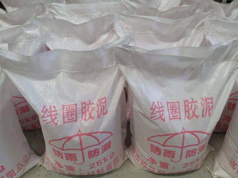 中频感应电炉线圈胶泥,  俗称红泥,   采用优质高档耐火材料为基料,配以矿化剂、活性剂、可塑剂、粘结剂等外加材料配制而成,具有较高的常温、高温强度,良好的绝缘性及硬化速度快等特点。使用线圈胶泥能很好的保护感应线圈不受金属液侵蚀及电流损伤,并能有效保护中频电源。