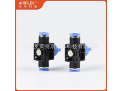 通气控制阀(如HVFF)是一种自动安全装置,利用内部浮球和弹簧机构感知压力变化,在管道高点自动排气或在负压时进气,防止气阻与真空破坏,用于保护给排水等封闭管道系统。手控开关阀(如球阀、闸阀)是基础的管路截断设备,通过人工旋转手轮或扳动手柄实现流路的全开或全关,用于设备隔离与系统分段。气动快插接头专为气动软管(PU管/尼龙管)与带螺纹元件的连接设计,无需工具即可通过“推入锁定、按压拔出”的方式实现气管的快速插拔与可靠密封,是自动化设备气路布管的高效组件。快速调节接头则是用于带压流体线路快速对接的公母头配对件,采用单向阀设计(常见为双截止型),连接时顶开阀芯导通流路,断开时自动封闭两端防止泄漏,广泛用于气动/液压工具与主机管线的频繁换接场合。